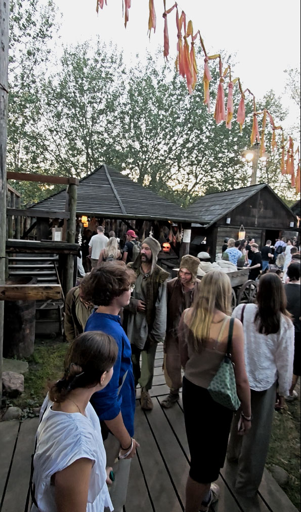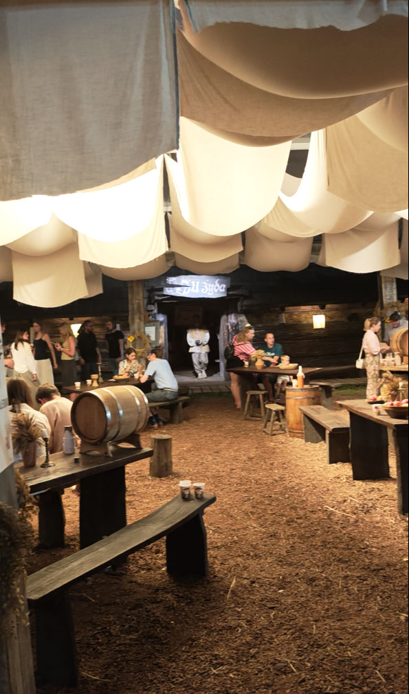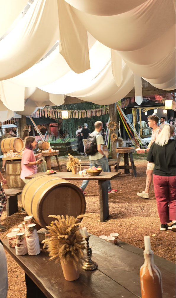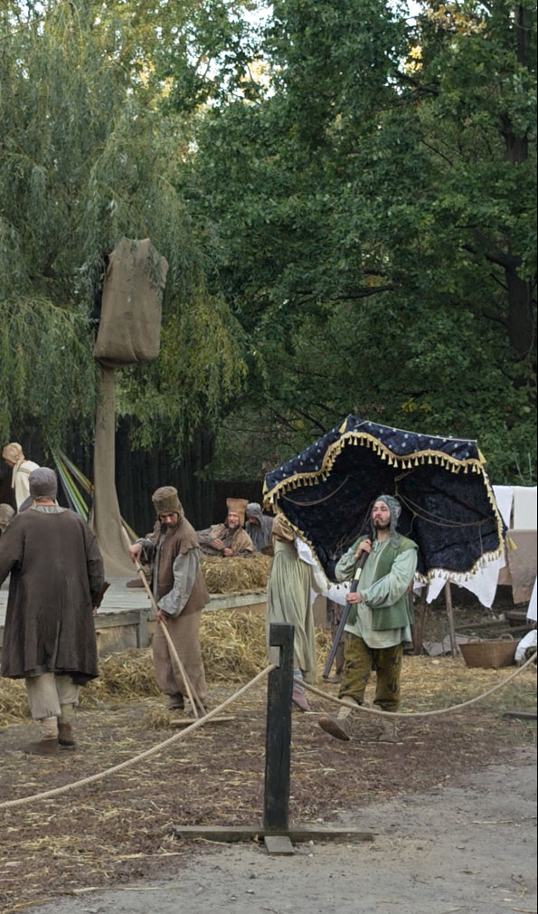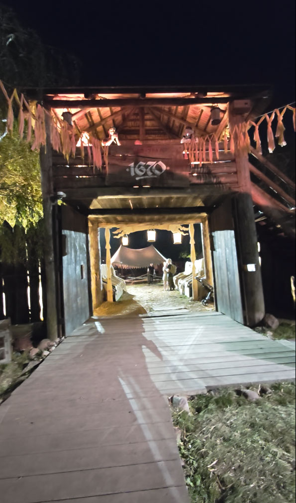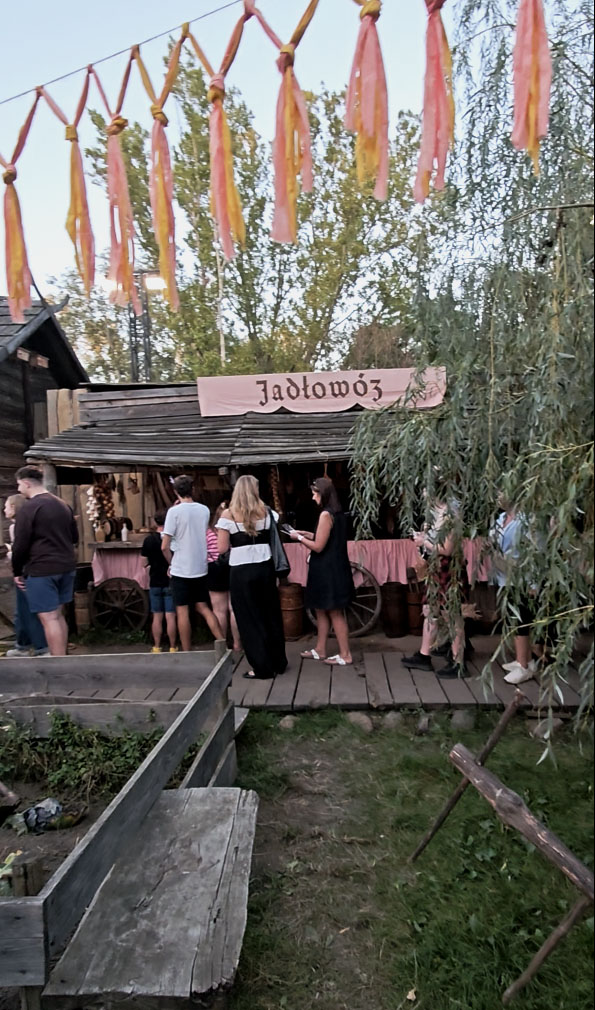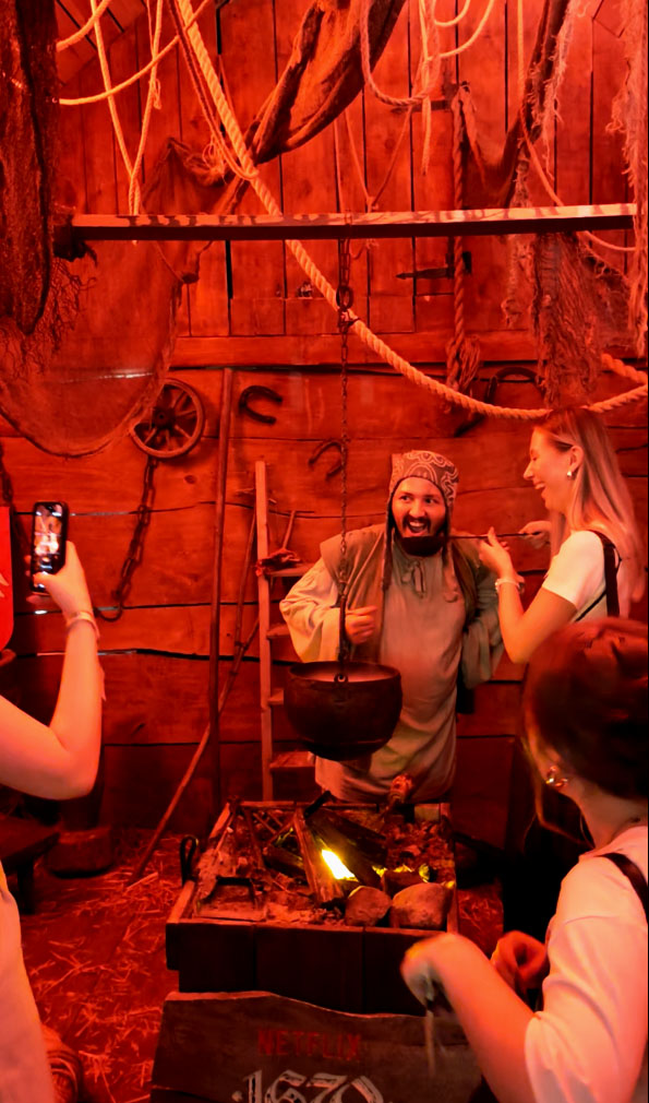 Wybór Jomsborga to ruch pragmatyczny i symboliczny. Pragmatyczny — bo to gotowy, wiarygodny plan filmowy z bramą, palisadą, długim domem i zapleczem organizacyjnym, z doświadczeniem w przyjmowaniu dużych grup. Symboliczny — bo odpowiada wyobrażeniu widzów o „wiosce z XVII wieku”, a jego topografia pozwala zbudować przepływ: brama — dziedziniec — punkty aktywacji — strefy odpoczynku — wyjście przez sprzedaż pamiątek/food-punktów (jeśli aktywowane). Dzięki temu „immersja” nie zależy wyłącznie od dekoracji, lecz od samej przestrzeni.